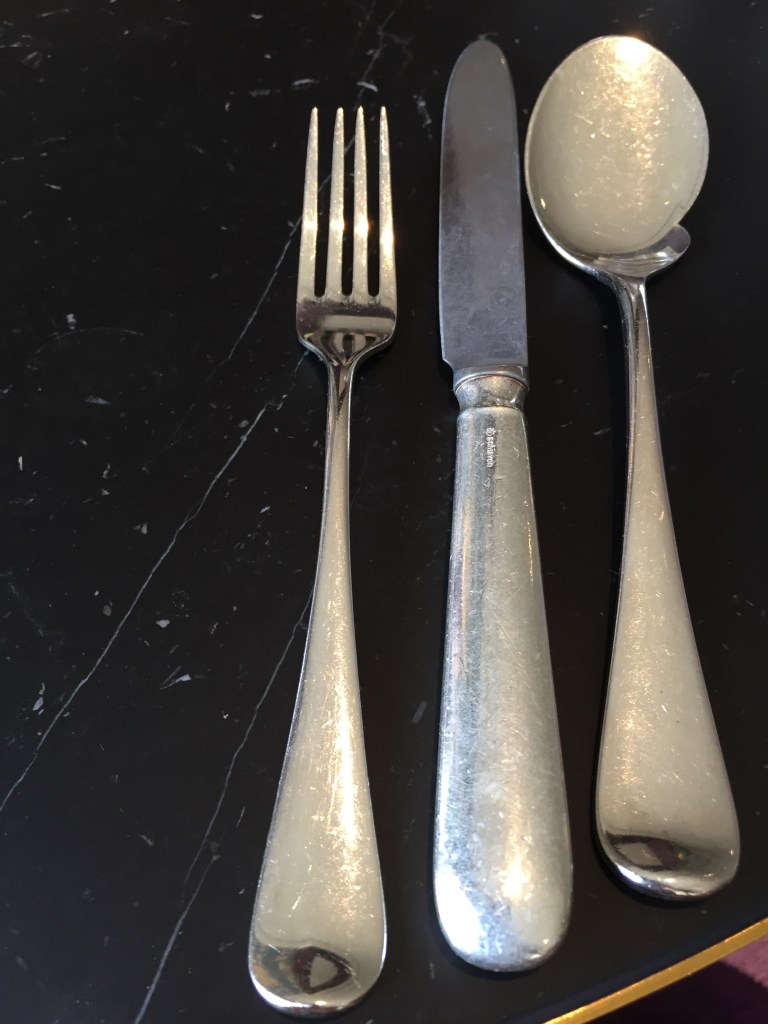 Das Licht ist bedauerlicherweise oft nicht ganz optimal. Ich feiere Momente des Tageslichts, ansonsten ist das mit dem Licht experimentell. Mit einer Serviette kannst Du Helligkeit auf die dunkle Seite des Arrangements lenken. Ein weißes Blatt Papier hilft auch. Insgesamt habe ich hier keinen großen Einfluss, ich nehme es wie es ist und mache das Beste daraus. Ich bin ja in der Hauptsache zum Genießen und Unterhalten da.