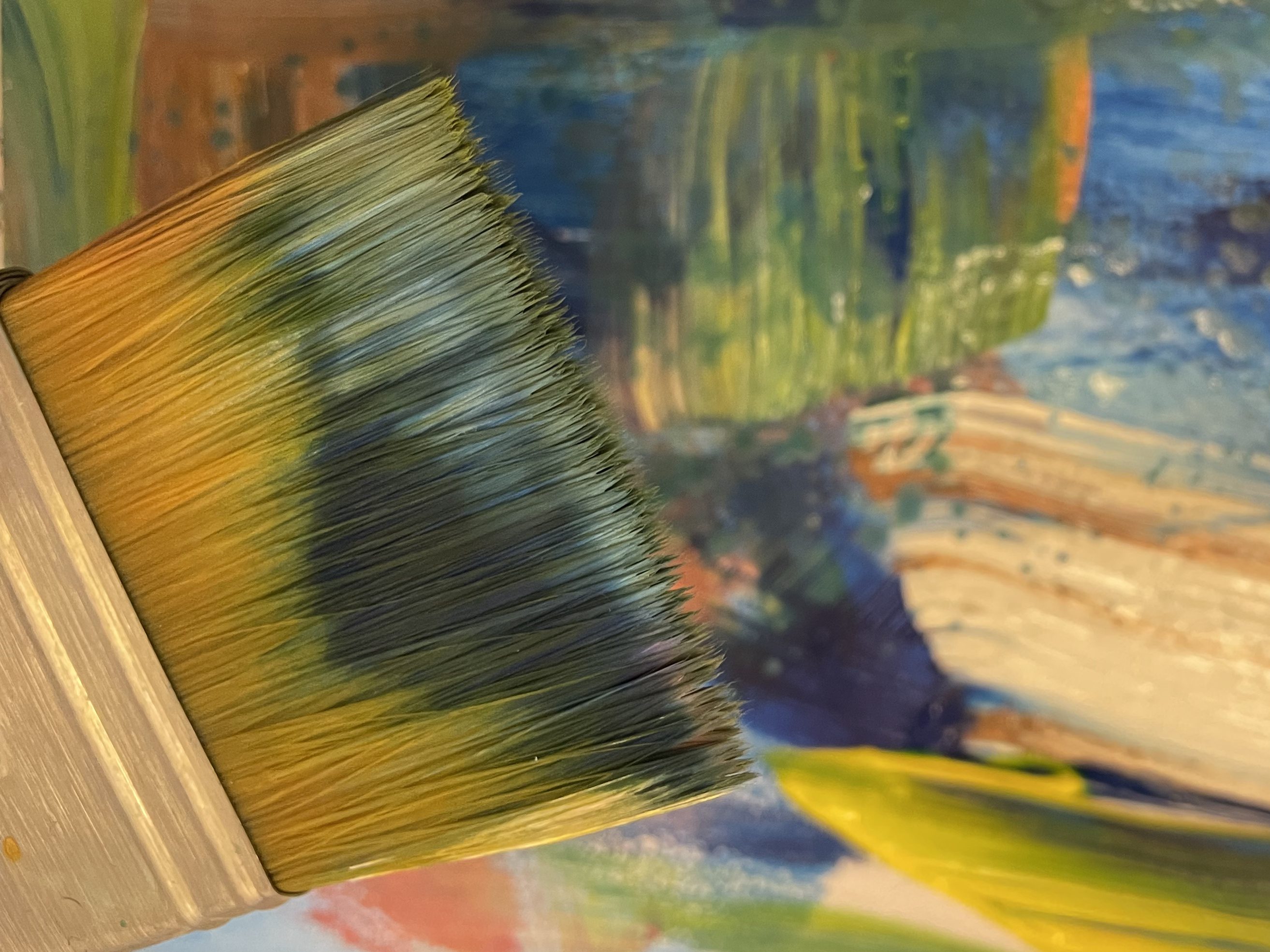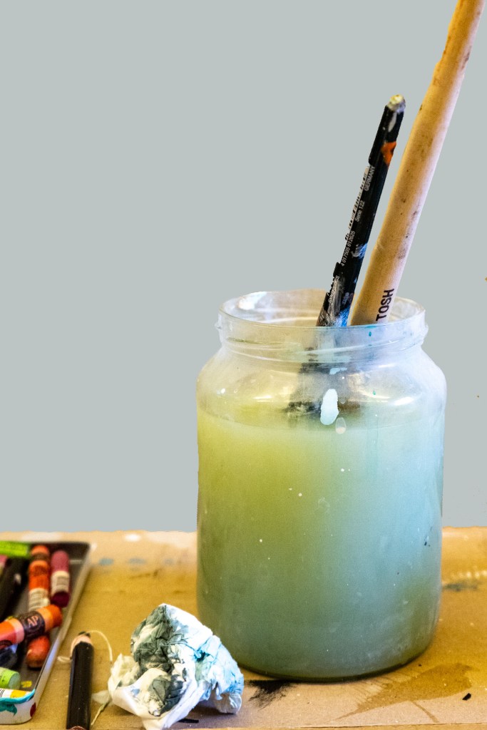 Ich bin überrascht, dass ich so rasch wieder aus dem Vollen schöpfe, ein MalerIn ist und bleibt auch ein MalerIn, auch ohne Pinsel in der Hand. Ich motte mein Werkzeug aus, meine mir lieben Pinsel, die ihre Eigenarten entwickelt haben im langjährigen Gebrauch.