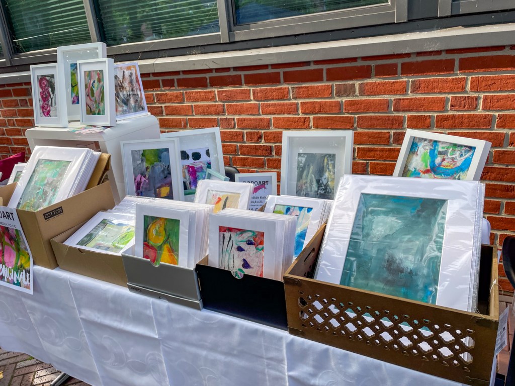 Es war aufregend. Mein erster Stand in Ostfriesland und überhaupt. Ich habe früher in München „nur“ Ausstellungen gehabt, etwas völlig anderes also. Aber hier in neuer Umgebung war es verlockend, etwas Neues zu probieren. Ich bin so vielen sympathischen Menschen begegnet an meinem Stand, habe so viele liebe Tipps für meine neue Heimat erhalten und ein großes Interesse an meinen Kunstwerken erlebt, zauberhafte Gespräche geführt. Das ist auch schon der Unterschied zu einer Ausstellung. Ich bin bei einem Stand die ganze Zeit bei meiner Kunst, und führe Gespräche, richte meine Kunstwerke neu her, sehe den Menschen ins Gesicht, schaue ihnen beim Schlendern zu. Bei einer Ausstellung habe ich maximal die Vernissage, um mit den geladenen Gästen zu sprechen. Letztendlich sprechen aber immer meine Werke für sich. So ist das in Ausstellungen und auch an meinem Marktstand.