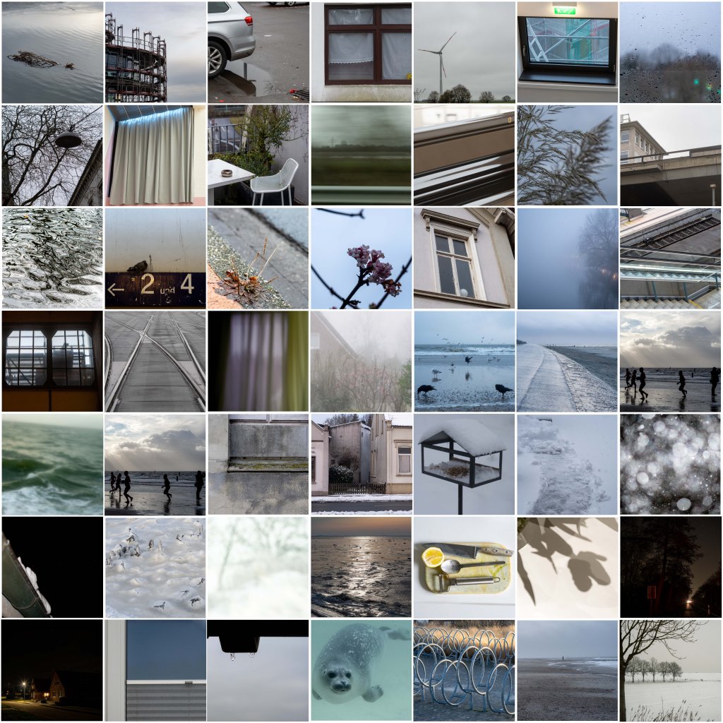 Das Beste an diesem Projekt war, dass wir nicht ins Stöhnen über trübe Wintertage, neblige Szenen, oder triste Motive kamen, sondern diese feiern konnten. Fotografiert und dem Projekt zugefügt ergibt das immer wieder erstaunlichen Paarungen. Was uns sehr freut. Es ist wie täglich Adventskalender für mich. Ich weiß nicht, welches Bild auf meines prallt. Kleine Überraschungen versüssen den Alltag.