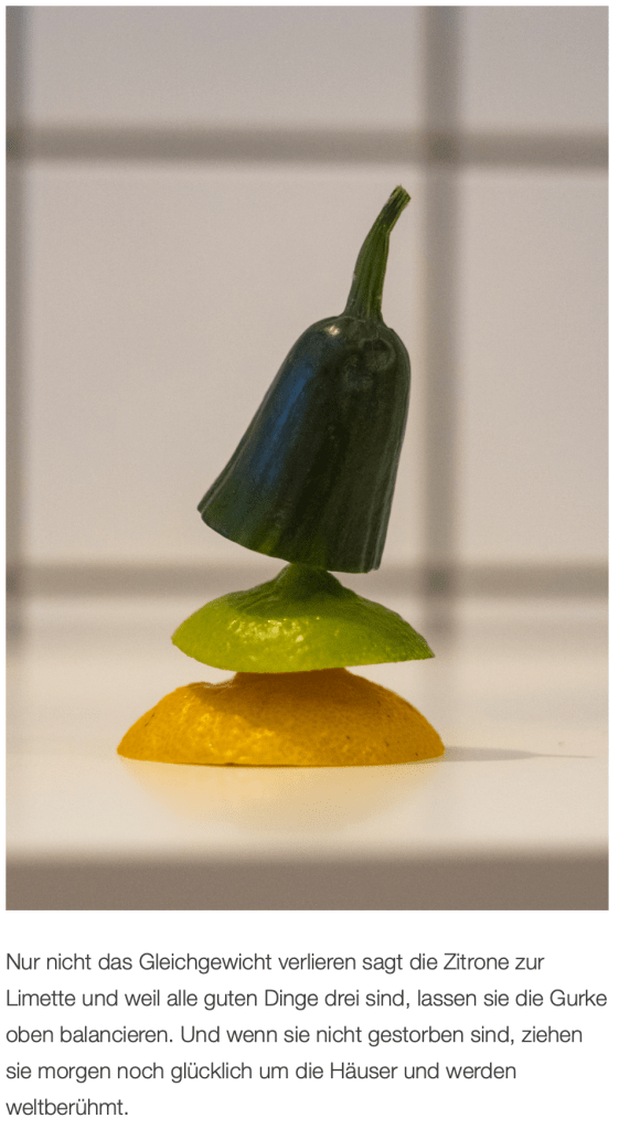 Ich liebe diese Rahmenbedingungen. Umso enger diese scheinen, umso kreativer werden wir herausgefordert.