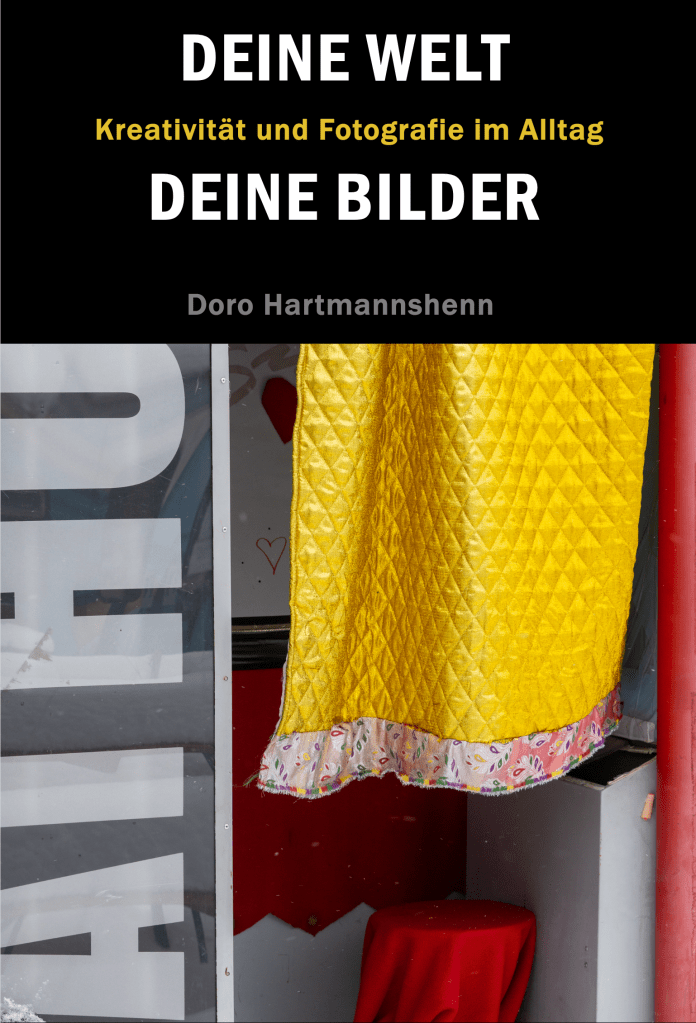 Ein Buch ohne Schnörkel, ohne Technikvorgaben. Es geht um Deine Kreativität und um das Bildermachen. Finde pro Thema Ideen die definitiv nur ein Anfang sind. Du kannst Dir die Aufgabe oder Fotoidee auswählen, die Dich gerade anspricht. Das Buch DEINE WELT DEINE BILDER – Kreativität und Fotografie im Alltag gibt es in drei Formaten, als Ebook, Taschenbuch oder gebundenes Buch.